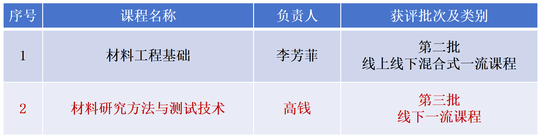 在本科课程建设与高素质材料专业人才培养质量提升方面取得阶段性重要成果。
