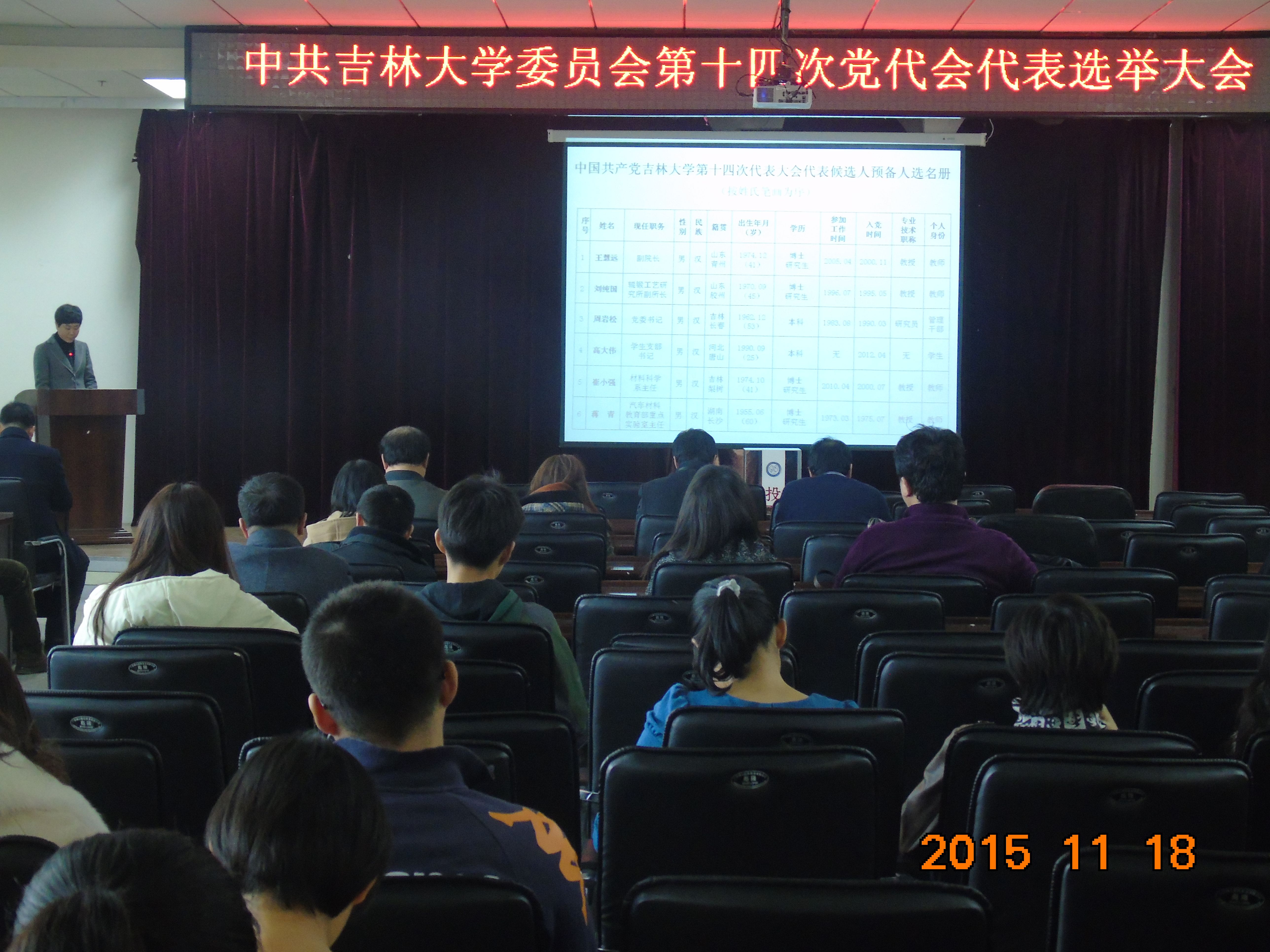 党委在机械材料馆八楼会议室组织召开出席中国共产党吉林大学第十四次代表大会代表选举大会,共计91名有选举权的正式党员参加了会议。会议由欧洲杯