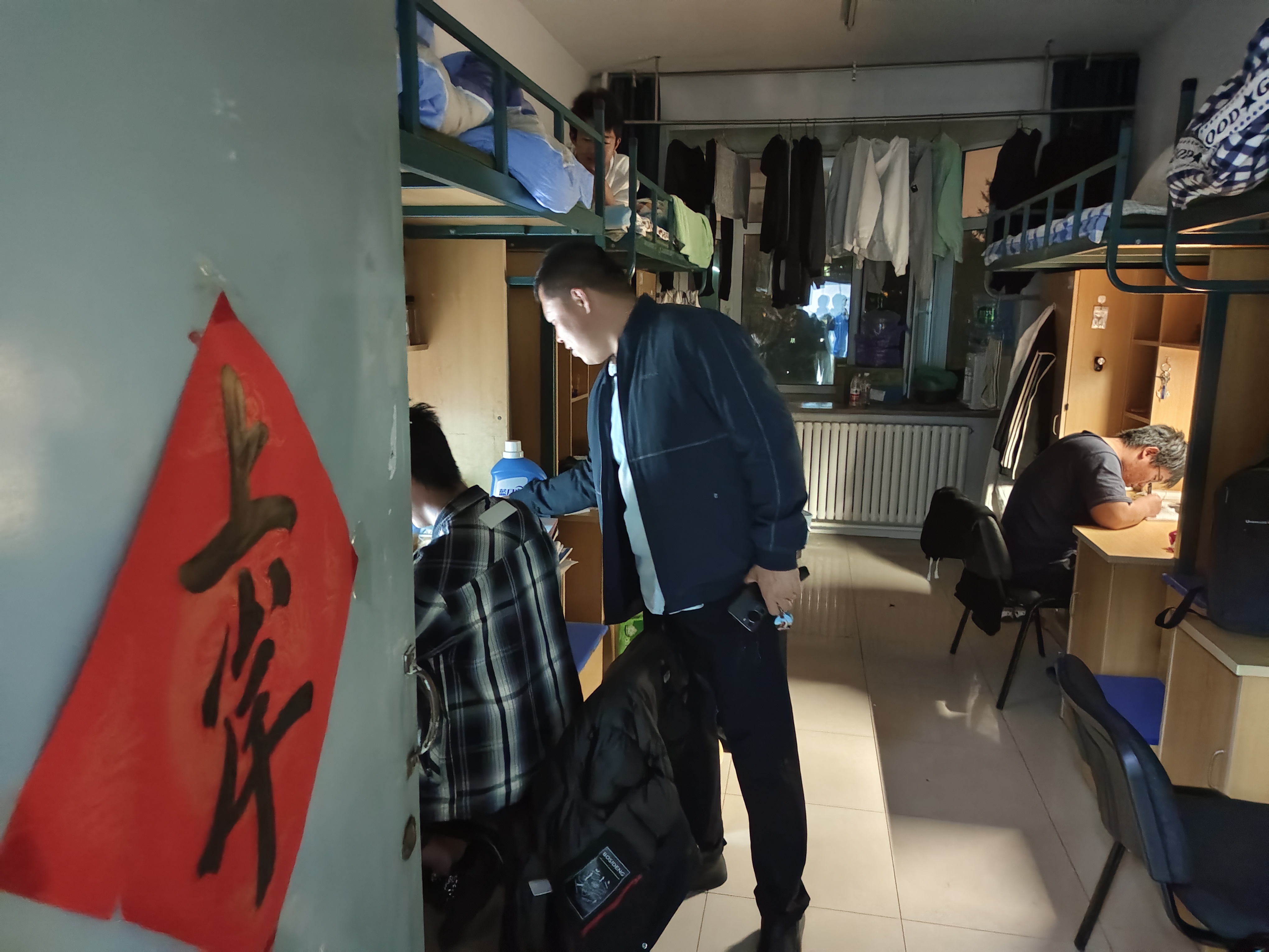 在走访过程中,辅导员严冬先后走访了部分转入学生寝室、以及一些重点学生寝室,不仅关心了学生在寝室的学习和生活,还了解了学生的归寝情况,关心了解转入学生的身心健康。